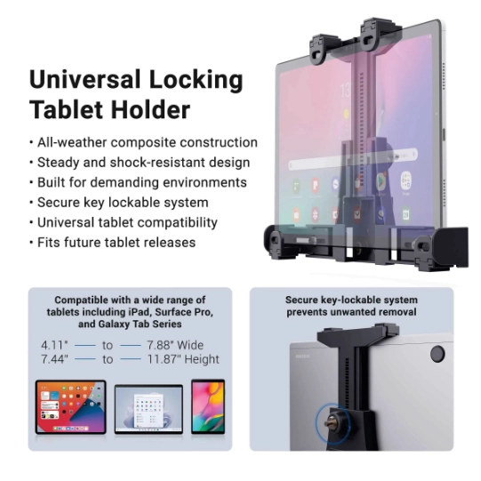 Our tablet mounts provide a secure and stable way to position your device exactly where you need it. Designed for versatility, these mounts accommodate a wide range of tablet sizes and can be used in various environments, including retail counters, offices, vehicles, and workstations. Each mount offers a reliable hold to keep your tablet steady during use, whether for viewing, interaction, or hands-free operation.